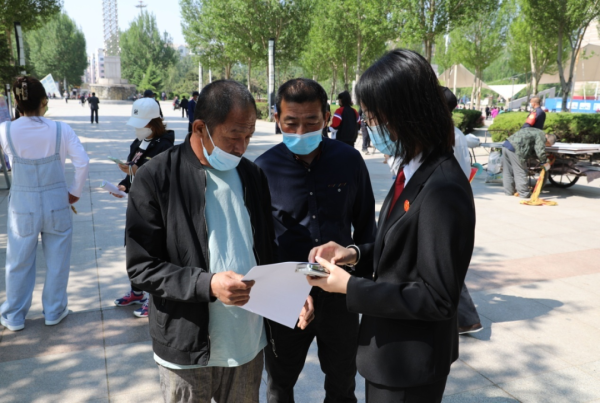 2022年5月20日上午,四平市铁东区组织在铁东文化广场集中宣传《信访工作条例》活动,四平市铁东区人民法院立案庭全体信访工作人员积极参与,对《信访工作条例》内容大力宣传,向群众普及信访知识,增强群众对《信访工作条例》的知晓度。